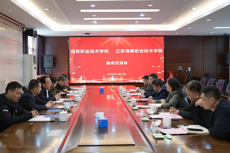 座谈交流环节,与会人员围绕专业建设、师资队伍等话题深入交流,共话合作发展愿景。温华兵表示,江苏海院始终立足航运、船舶等行业产业需求,围绕造船、开船、管船等发展事业,在实践中积累一些经验。他说,两校有着深厚的友谊和良好的合作基础,2020年以来,延安职院40余名教师来我校挂职交流,我校近20名教师赴延安职院学习锻炼,两校在教育教学改革、师生技能大赛等领域合作取得了多项省部级成果。他希望两校进一步加强沟通对接,拓展合作领域,实现资源共享、优势互补、共同发展。牛永红校长对我校的热情接待和经验介绍表达了感谢。他表示,江苏海院在办学育人、专业建设、师资队伍建设等方面积累了宝贵经验。他表示,期待两校进一步深化交流,未来在人才培养、师资互访、教学科研等方面开展更多务实合作,携手推动两校事业高质量发展。