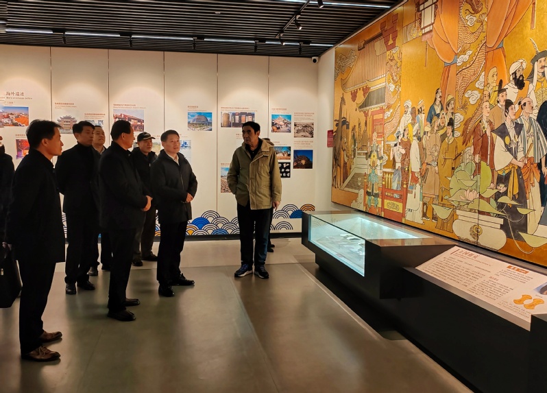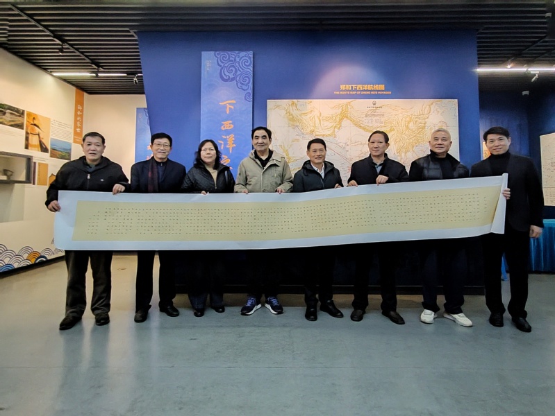 在南京郑和研究会专家的陪同讲解下,万健一行首先参观了郑和纪念馆。展厅内,一行人依次驻足“走近郑和”“郑和家世”“郑和下西洋航线”等主题展区,认真聆听郑和七下西洋伟大壮举的专业讲解,细致查看馆藏的历史文献、航海史料、航线图谱与相关文物,深入了解郑和下西洋在航海技术、中外友好交流、海洋探索等方面的历史性成就,深刻感受郑和不畏艰险、勇于探索、热爱祖国、崇尚和平的精神。参观过程中,双方互赠了郑和下西洋航海路线图、书法长卷等特色文化藏品,以文化为纽带深化交流联结。