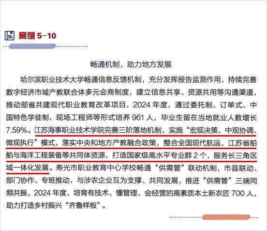 据悉,教育部职业教育与成人教育司自2012年探索实施高等职业教育质量年度报告制度以来,已连续13年面向全社会公开发布《报告》。《报告》系统总结了2024年度我国职业教育改革发展成效,立体化展示了各省域、各地市及中高等职业学校的创新实践,从人才培养、服务贡献、国际合作和产教融合四个维度,遴选出东部、中部、西部、东北地区排名前10%的高等职业学校。