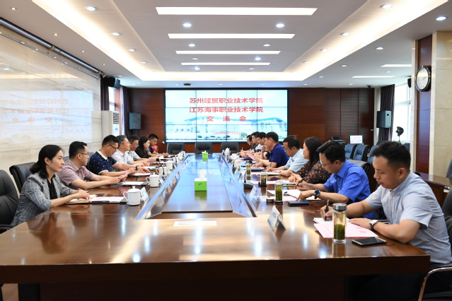 6月12日下午,苏州经贸职业技术学院校长赵驰轩、党委副书记朱伟峰等领导一行七人来我校访问交流。我校党委书记刘红明等校领导热情接待来宾,校长万健、党委副书记王卫兵、副校长陈晓琴出席交流会,宣传部、学工处、教务处、合作发展处、发规处、体育部等部门负责人参加会议。交流会由万健主持。