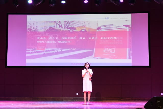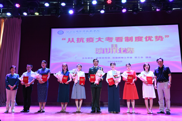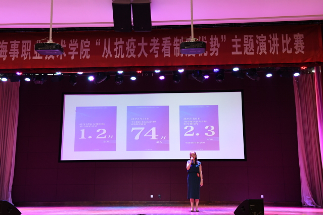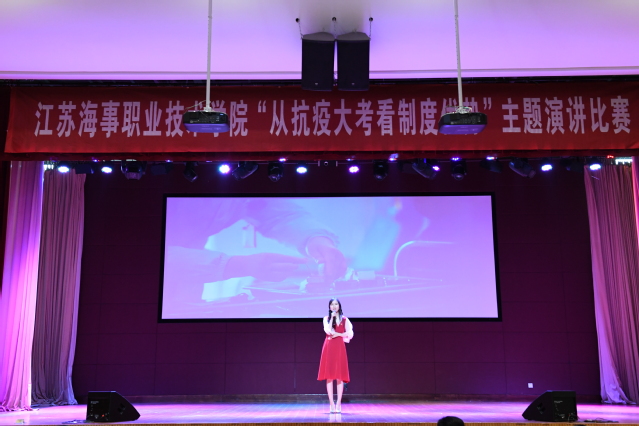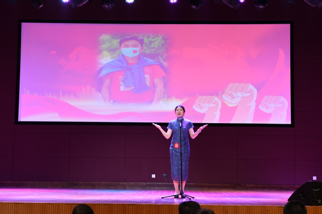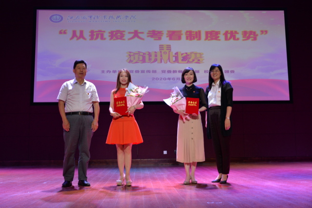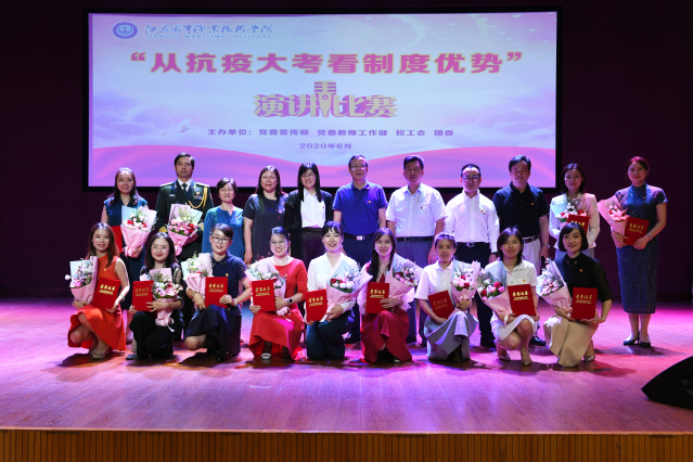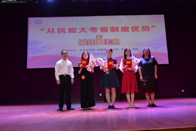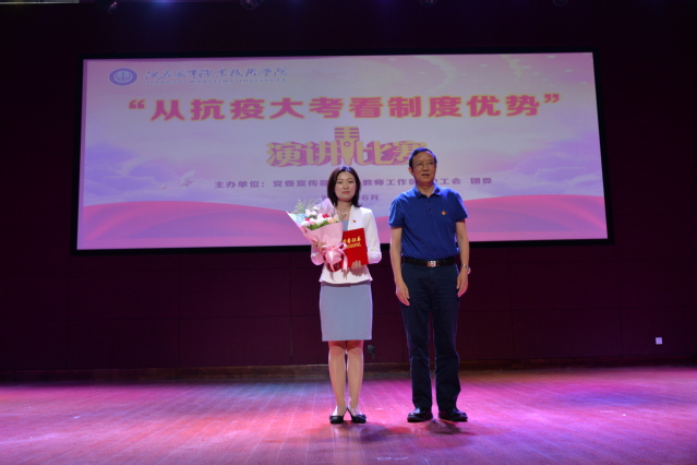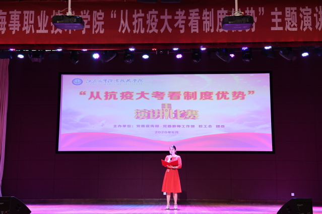 6月19日下午,由党委宣传部、党委教师工作部、工会、团委联合主办的“从抗疫大考看制度优势”主题演讲在我校大学生活动中心举行。党委副书记王卫兵,纪委书记陈之蕾,原党委副书记刘志洲,党委委员、宣传部部长刘桂香,党委委员、组织部部长孙俭,纪委副书记钱涛、工会主席王国清担任比赛评委,全体党总支(直属党支部)书记带领教师代表到现场支持本单位本部门参赛选手。